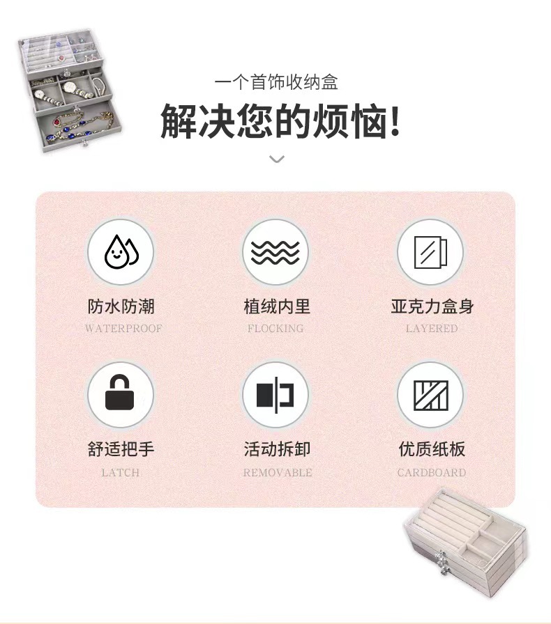 Acrylic Jewelry Storage Box Anti-oxidation Earrings Jewelry Box Earrings Necklace Flannel Dust Box
