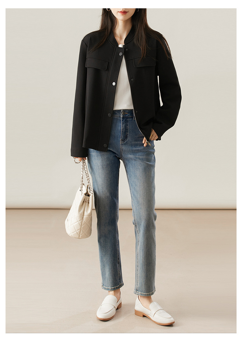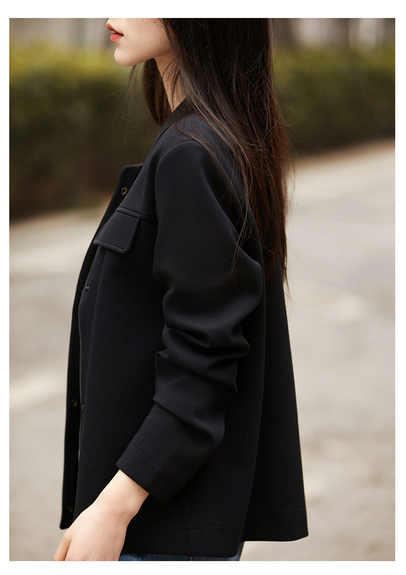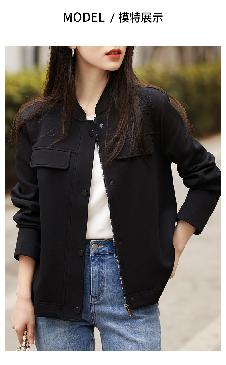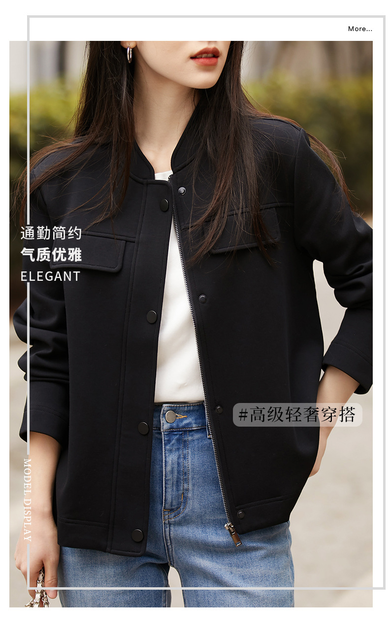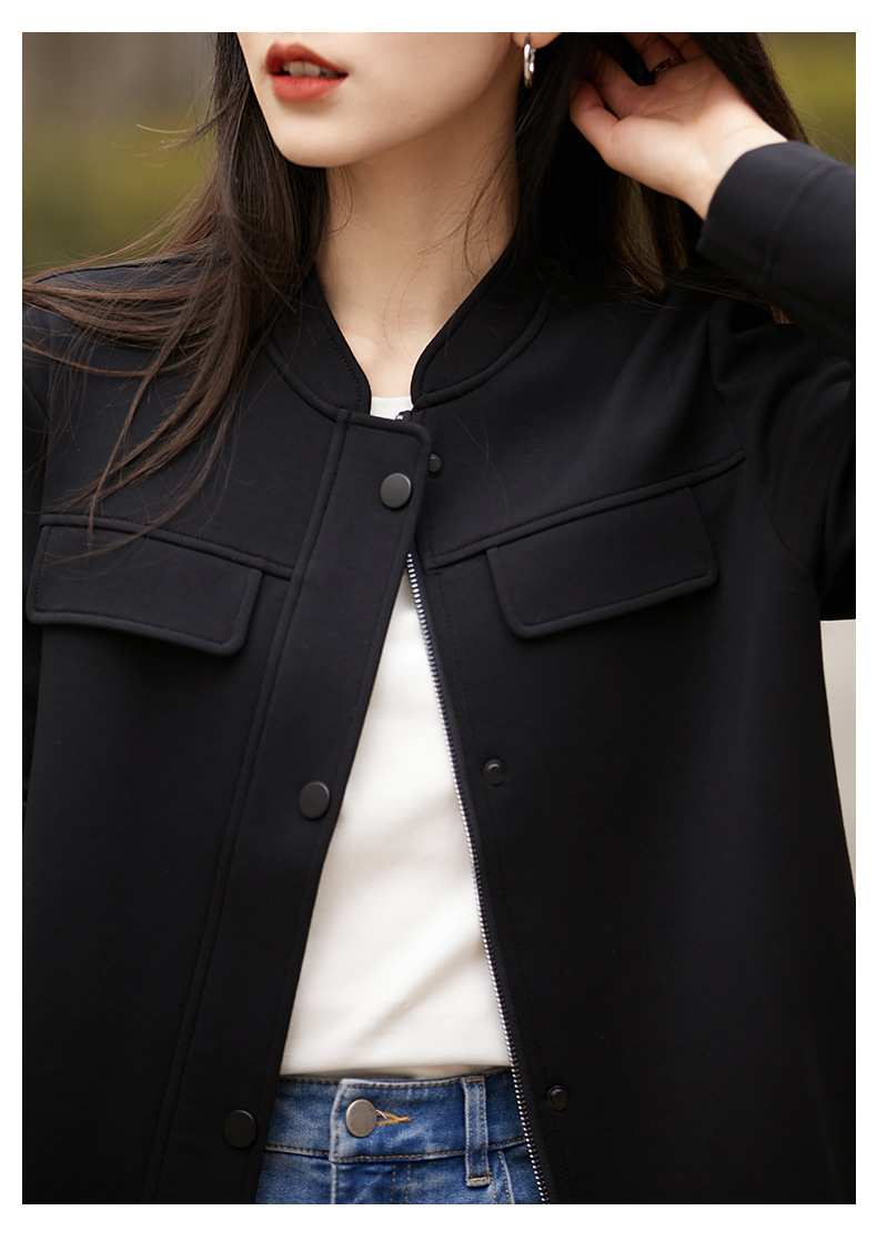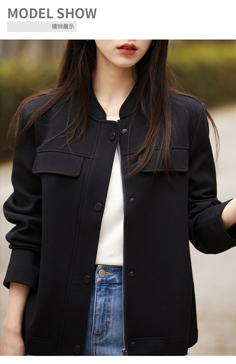 Casual Versatile Minimalist Cotton Baseball Collar Modern Jacket Coat Women's Autumn New Style Vertical Collar Long Sleeve Top