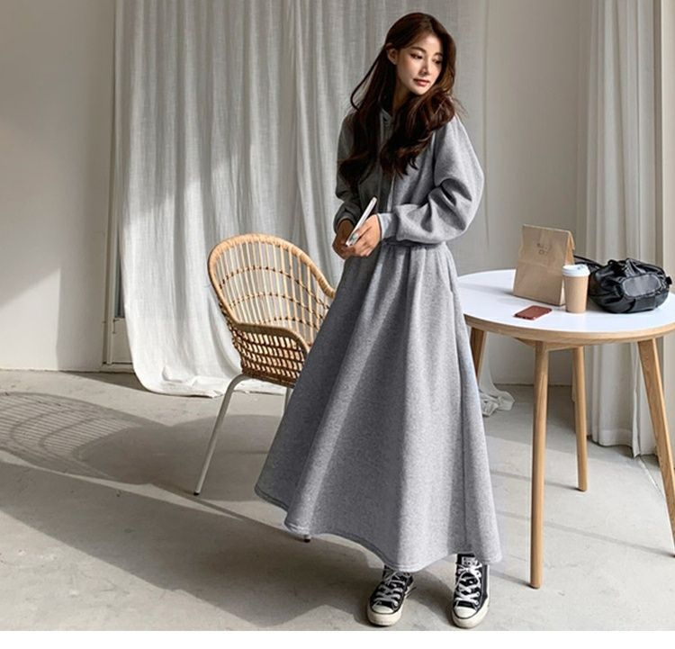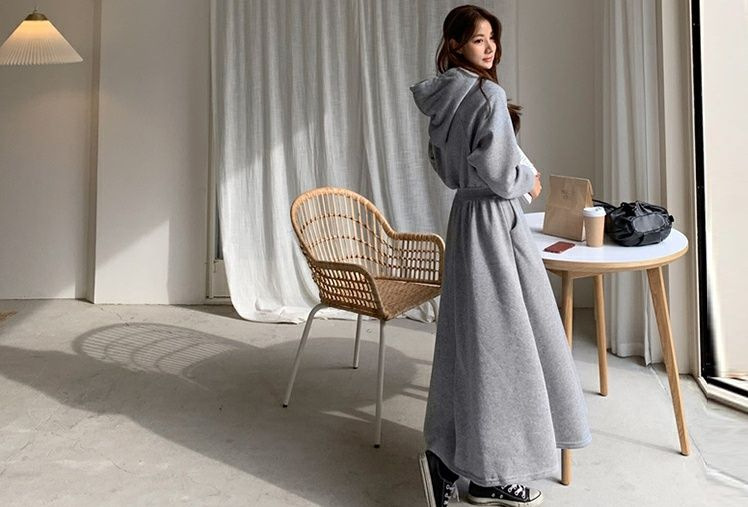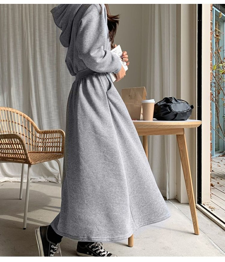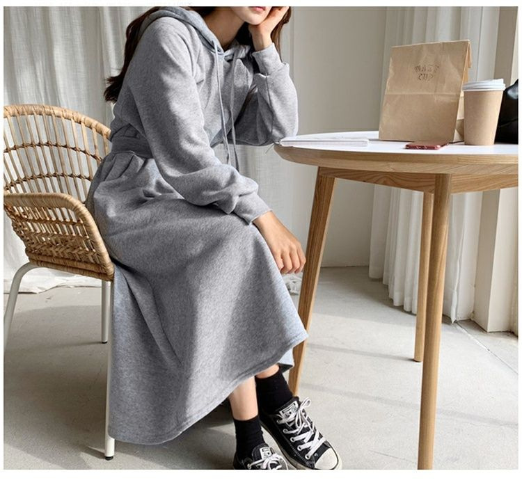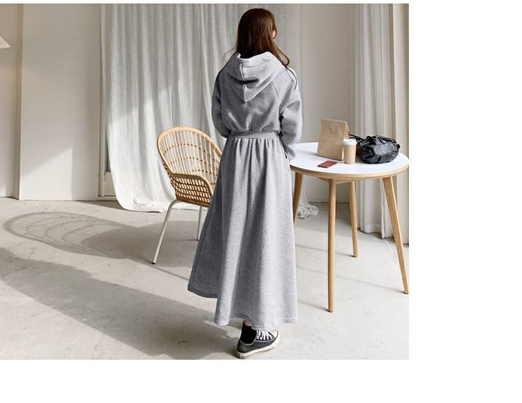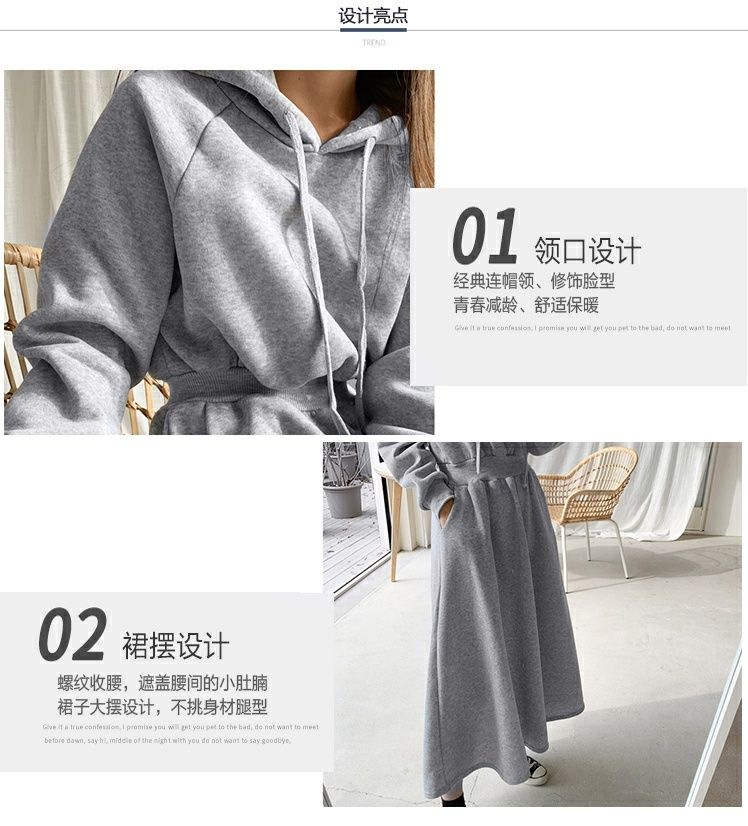 Sweater Skirt Plus Size Spring And Autumn Sweater Skirt Women's Long Slimming High-knee High Waist Hooded Dress Casual Skirt