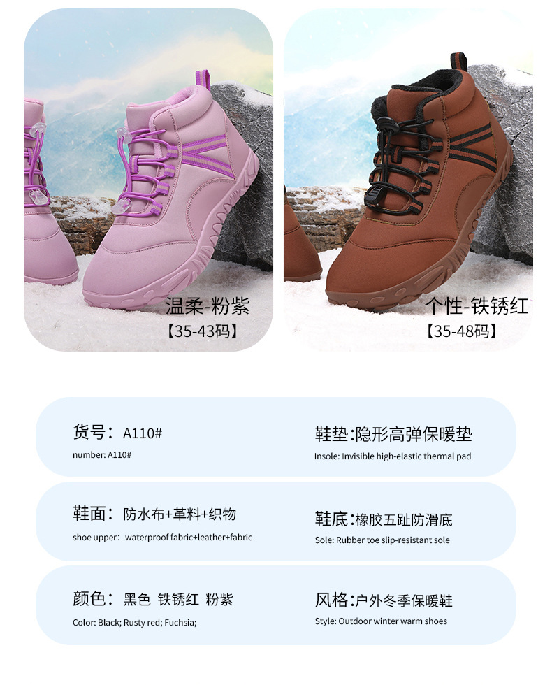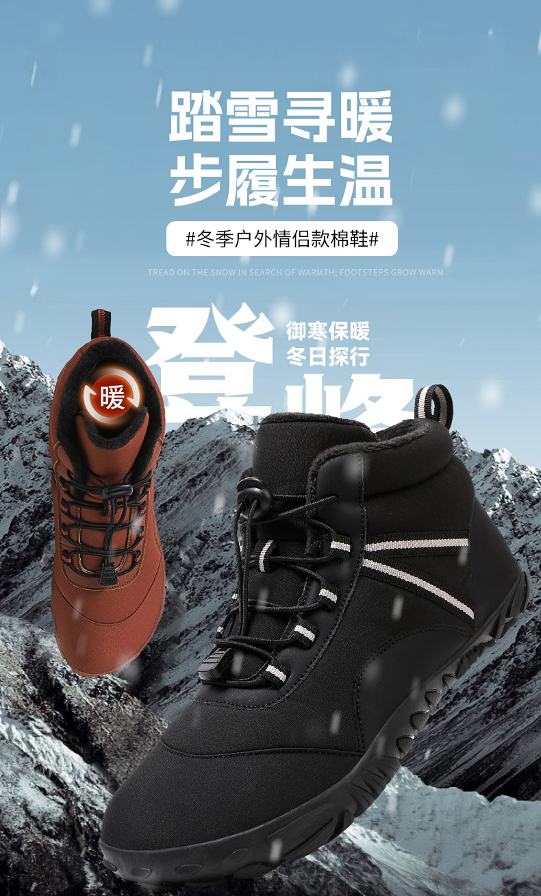 Winter Cross-border Outdoor Leisure Sports For Men And Women, Non-slip, Waterproof, Velvet And Thickened High-top Cotton Shoes, Snow Boots, Hiking Shoes